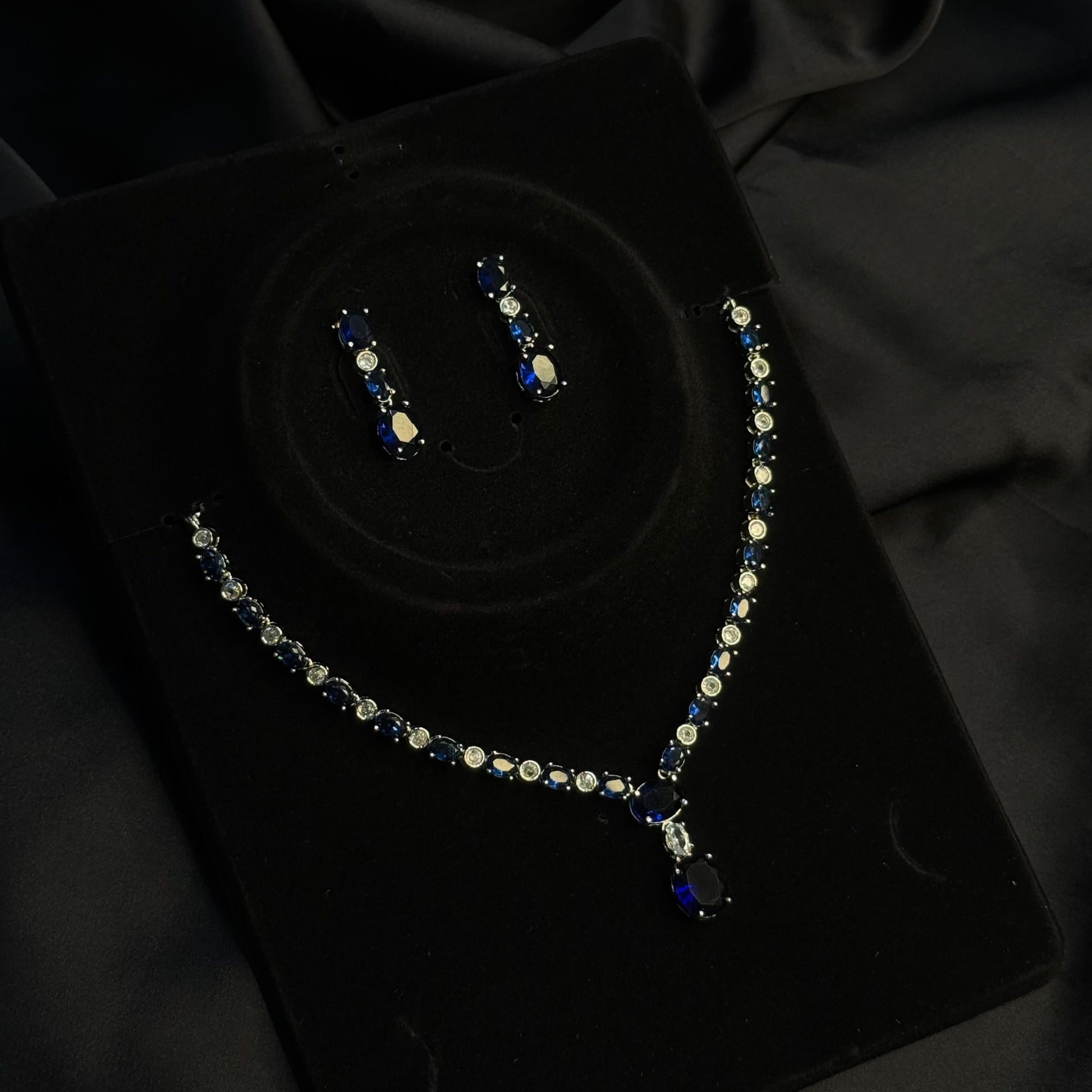 ✨Elegant Sapphire Blue Crystal Necklace & Earring Set✨